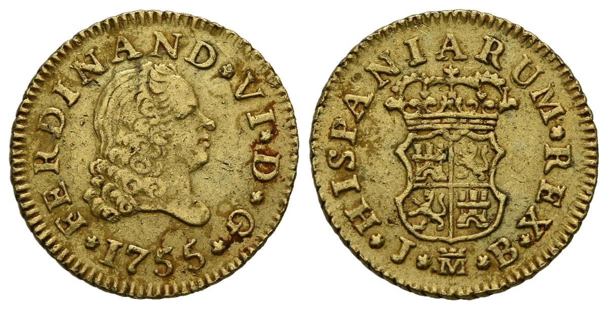 FERNANDO VI (1746-1759). 1/2 Escudo. (Au. 1,77g/15mm). 1755. Madrid JB. (Cal-2019-558). Tercer busto. MBC.