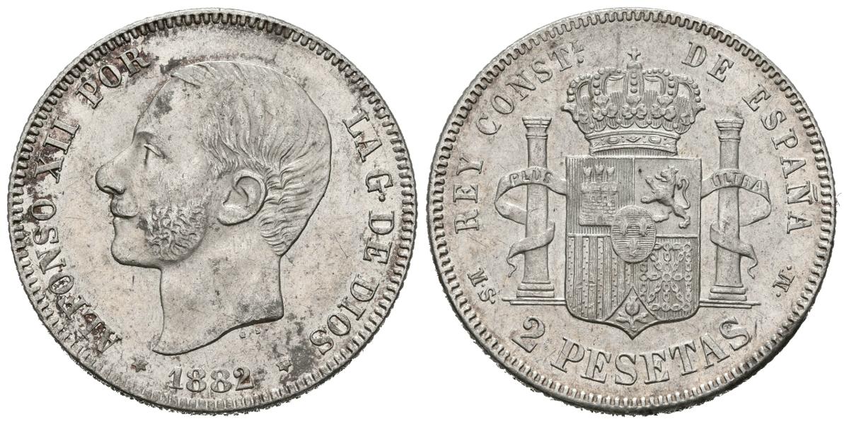 ALFONSO XII (1874-1885). 2 Pesetas. (Ar. 9,88g/27mm). 1882 *18-82. Madrid MSM. (Cal-2019-32). SC-.