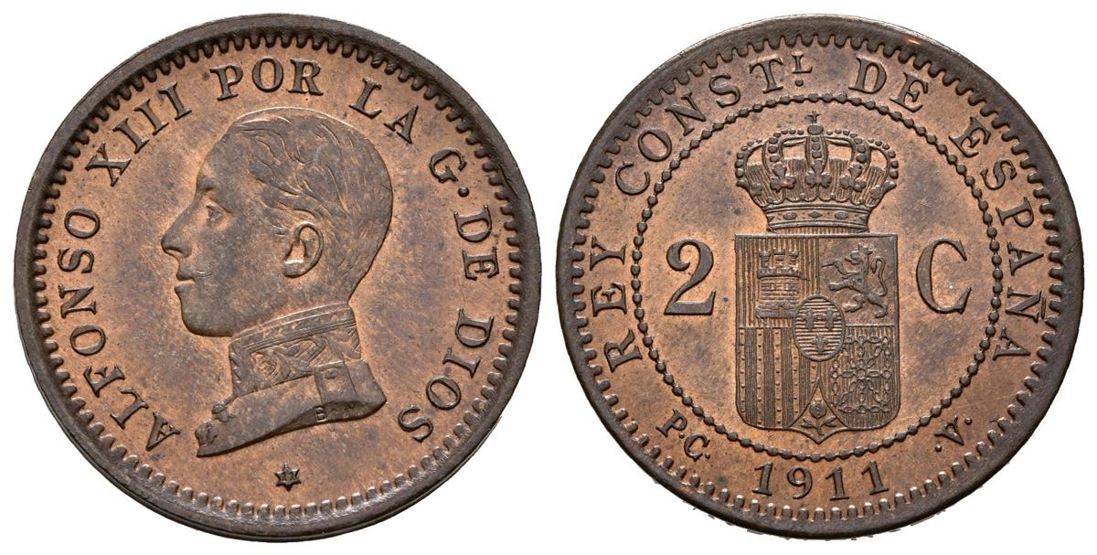 ALFONSO XIII (1885-1931). 2 Céntimos. (Ae. 2,05g/20mm). 1911 *11. Madrid PCV. (Cal-2019-13). EBC. Brillo original.