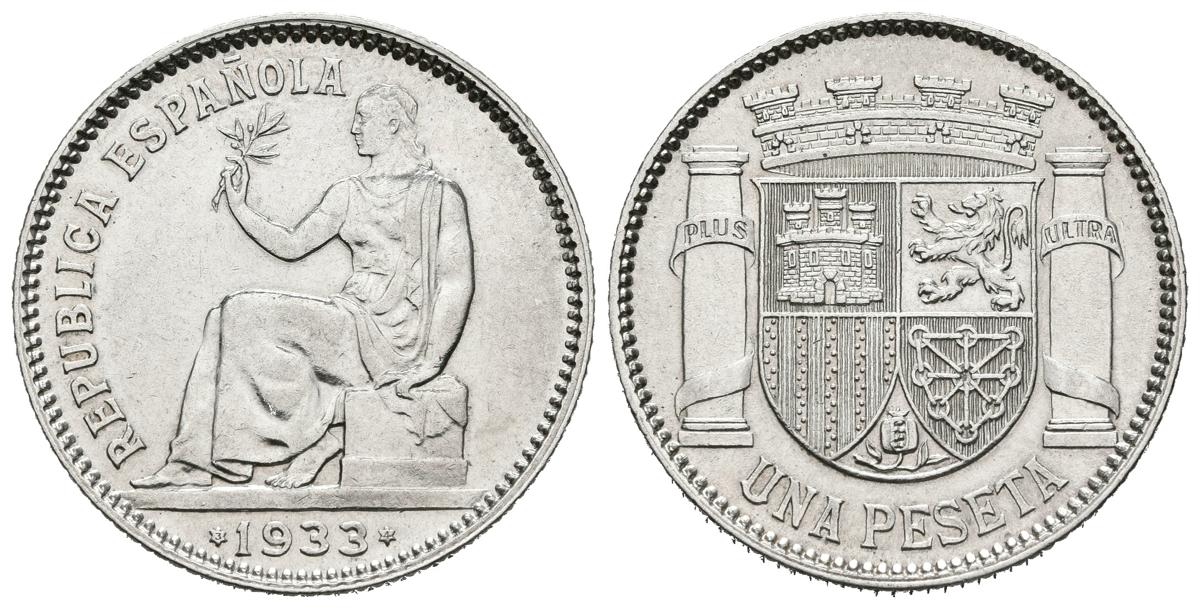 II REPÚBLICA (1931-1939). 1 Peseta. (Ar. 5,01g/23mm). 1933 *3-4. Madrid. (Cal-2019-34). SC.