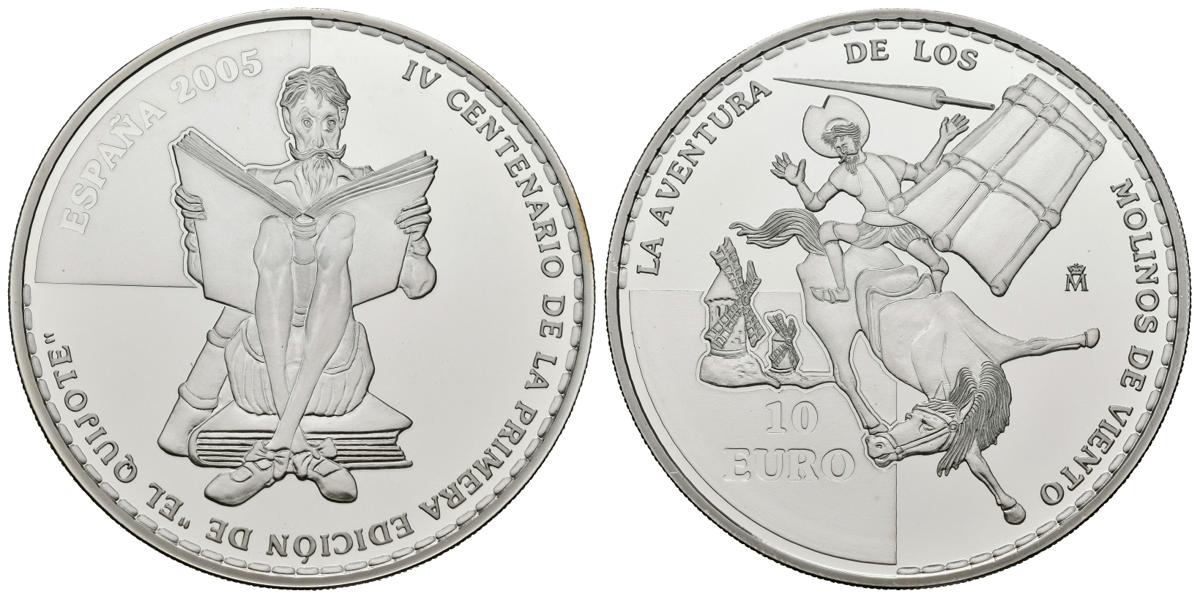 JUAN CARLOS I. 10 Euros. (Ar. 27,00g/40mm). 2005. "AVENTURA DE LOS MOLINOS DE VIENTO". PROOF. Presentada en estuche oficial con certificado.