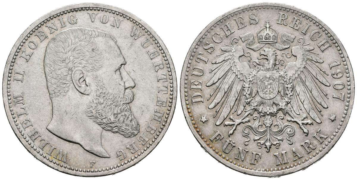 ALEMANIA. 5 Mark (Ar. 27,77g/38mm). 1907. Wurttemberg F.(Km#632). MBC+.