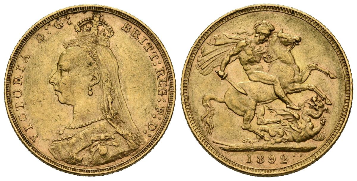AUSTRALIA. 1 Sovereign. (Au. 8,00g/22mm). 1892. Melbourne. (Km#10). MBC+.