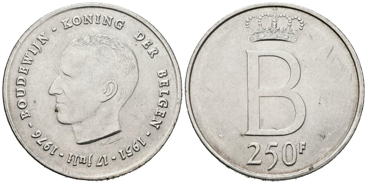 BELGICA. 250 Francos (Ar. 24,99g/37mm). 1976. (Km#157). EBC.