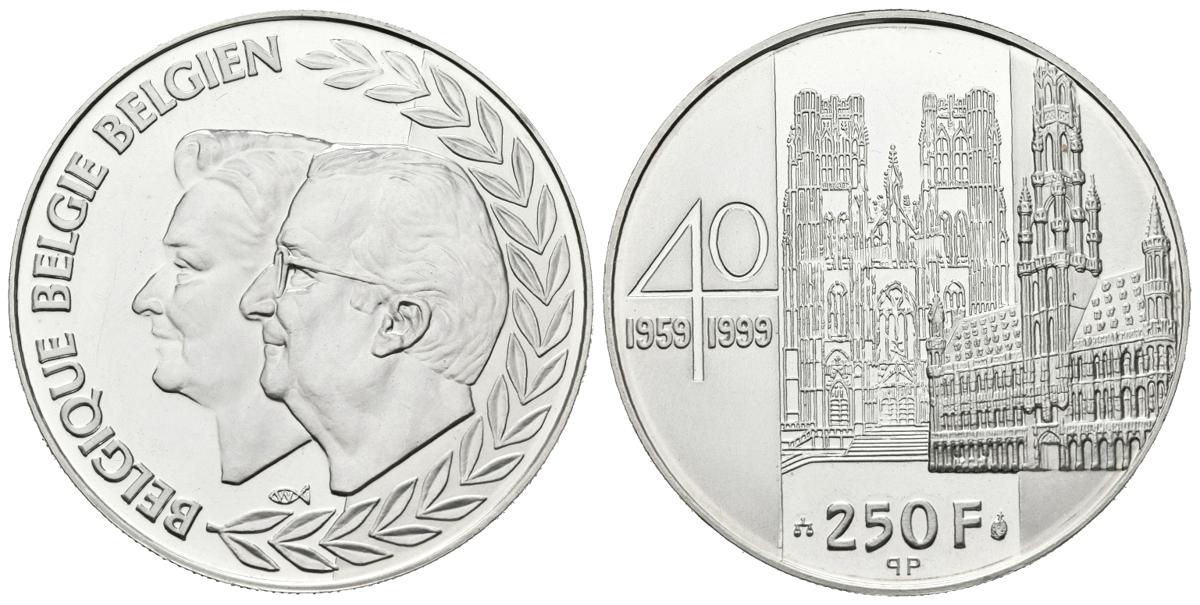 BELGICA. 250 Francs (Ar.18,79g/33mm). 1990. SC.