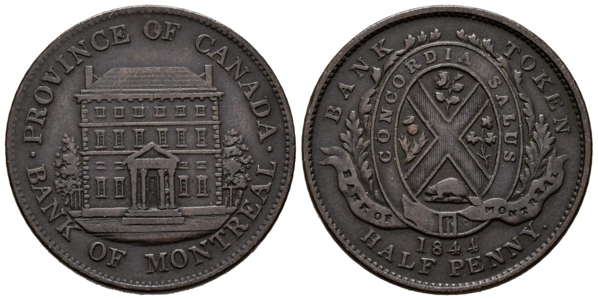 CANADA. 1/2 Penny. (Ae. 9,15g/28mm). 1844. Banco de Montreal. (Km#Tn18). MBC+.