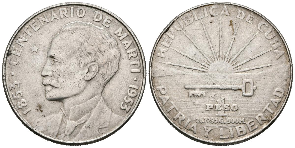 CUBA. 1 Peso (Ar. 26,79g/38mm). 1953. Centenario de Martí. (Km#29). MBC.