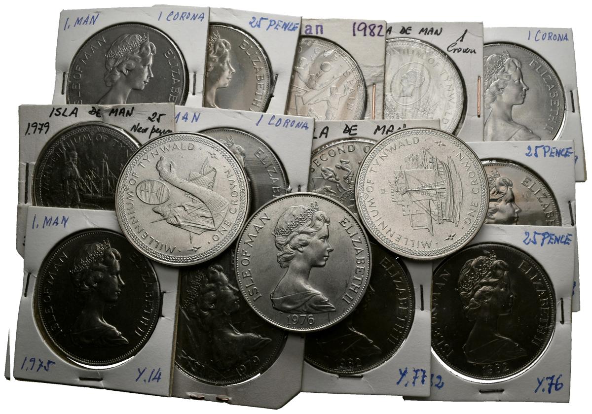 GRAN BRETAÑA. Lote de 16 monedas de la Isla de Man. Valores de 25 Pence y 1 Crown de entre los años 1975 y 1982. Diferentes estados de conservación. A EXAMINAR.