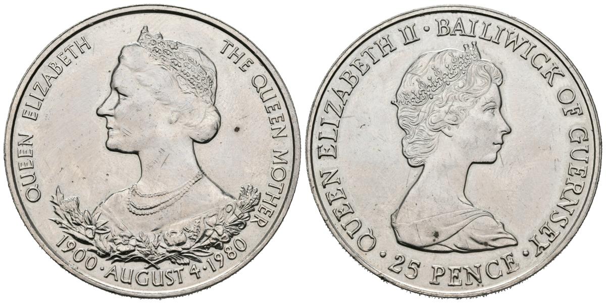 GUERNSEY. 25 Pence. (CuNi. 28,20g/38mm). 1980. (Km#35a). SC.