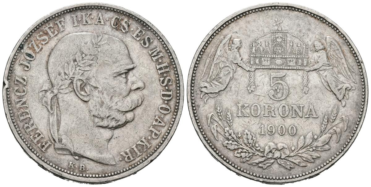 HUNGRIA. 5 Coronas. (Ar. 23,81g/36mm). 1900. (Km#488). MBC. Golpe en el canto.