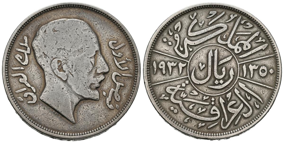 IRAK. 1 Riyal. (Ar. 19,71g/34mm). 1932. (Km#101). MBC-/MBC. Escasa.