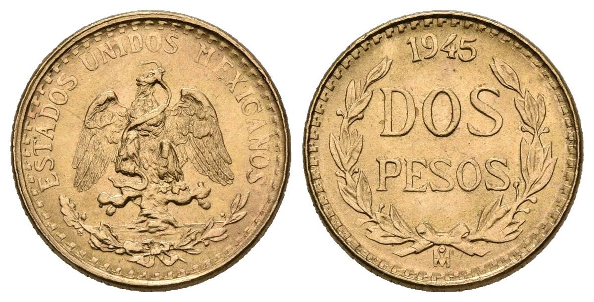 MEXICO. 2 Pesos (Au. 1.68g/11mm). 1945. (KM#461). EBC.