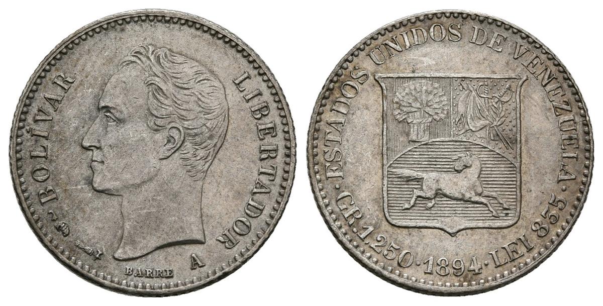 ESTADOS UNIDOS DE VENEZUELA. 1/4 Bolívar (Ar. 1,26g/14mm). 1894. París. (Km#Y20). EBC-.