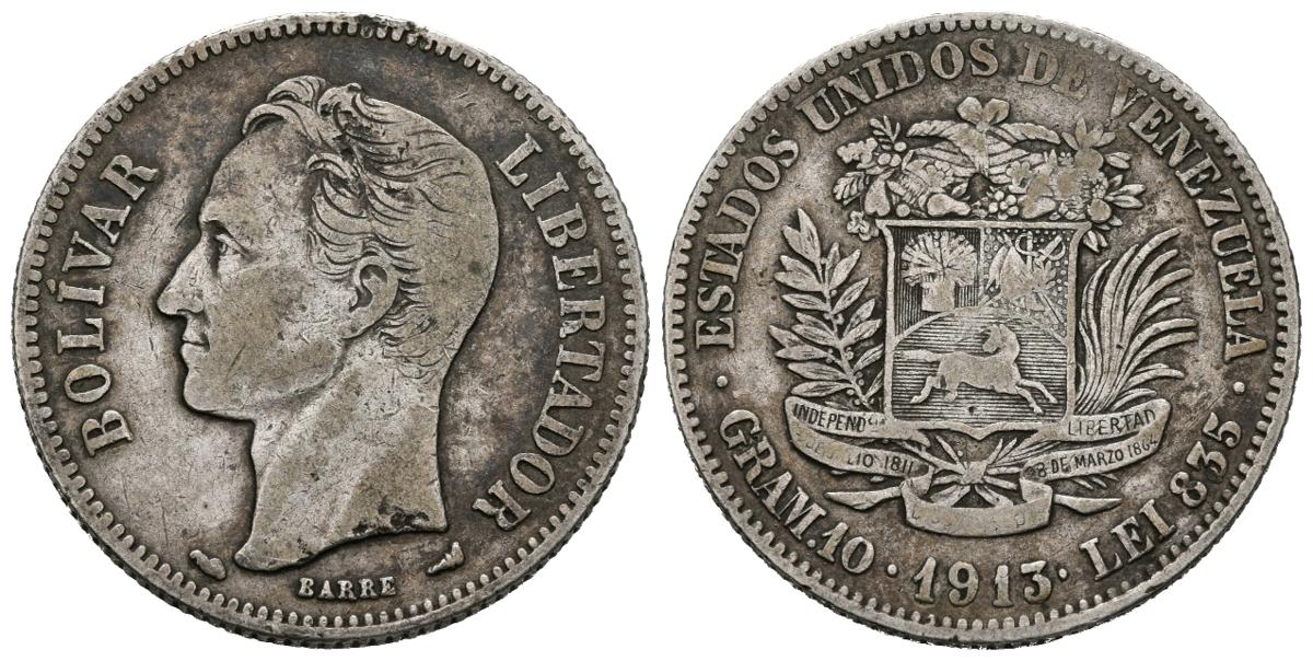 ESTADOS UNIDOS DE VENEZUELA. 2 Bolívares. (Ar. 9,85g/27mm). 1913. Philadelphia. (Km#Y23). MBC.