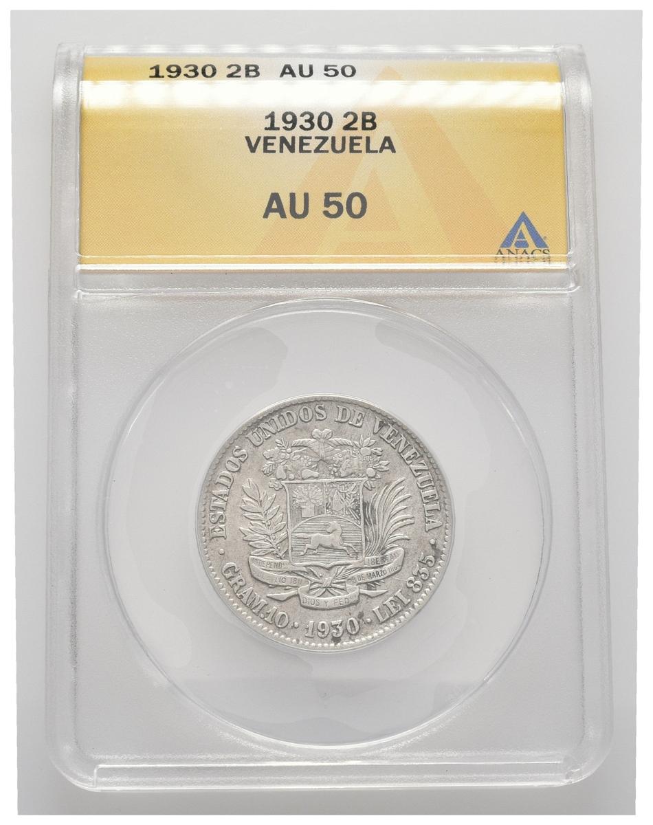 ESTADOS UNIDOS DE VENEZUELA. 2 Bolívares. (Ar. 10,00g/27mm). 1930. Philadelphia. (Km#Y23). Encapsulado ANACS AU-50.