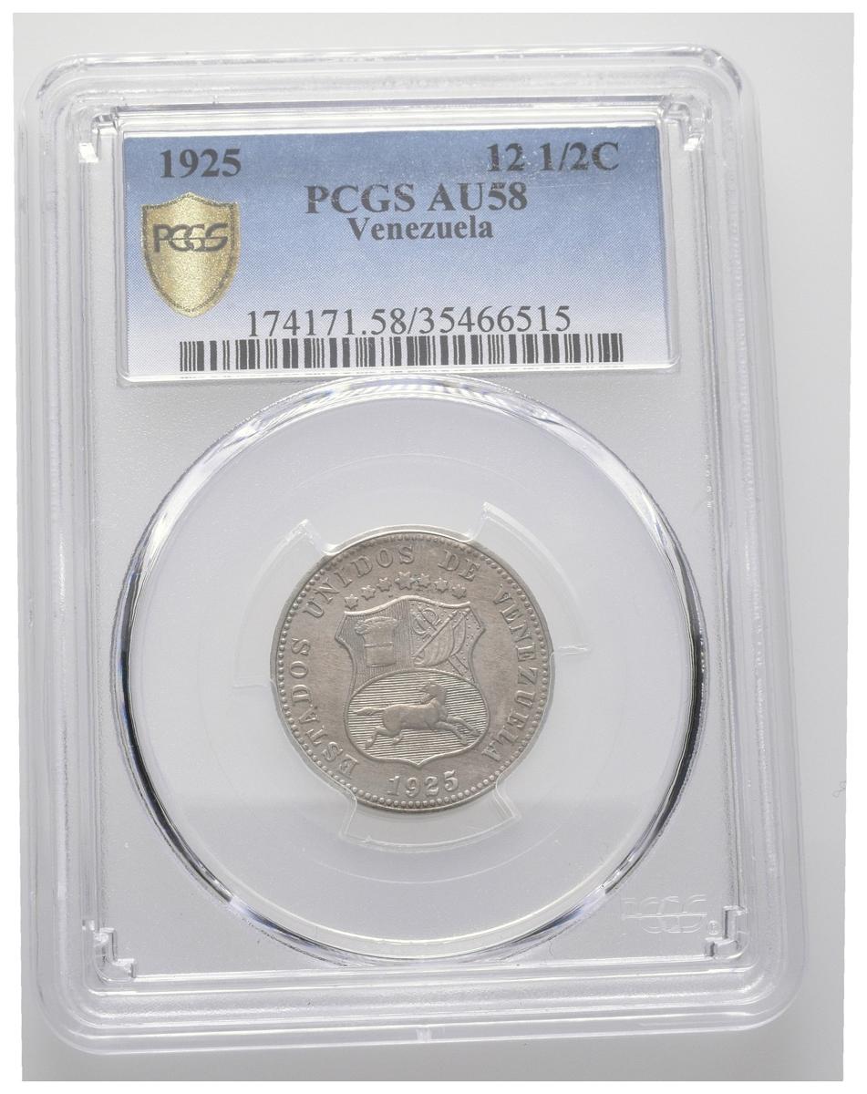 ESTADOS UNIDOS DE VENEZUELA. 12 1/2 Céntimos. (CuNi. 5,00g/23mm). 1925. (Km#Y28). Encapsulado PCGS AU-58.