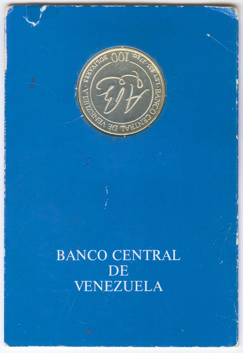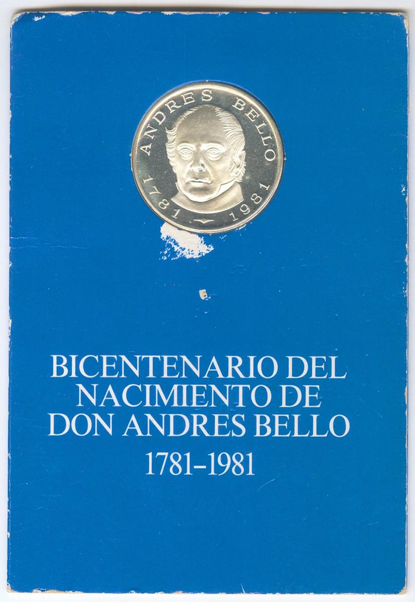REPUBLICA DE VENEZUELA. 100 Bolívares. (Ar. 27,00g/36mm). 1981. 200 Aniversario del nacimiento de Andrés Bello. (Km#Y57). SC. Incluye embalaje en cartón del Banco Central de Venezuela.