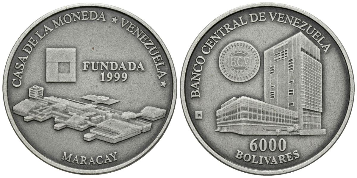 REPÚBLICA BOLIVARIANA DE VENEZUELA. 6000 Bolívares. (Ar. 28,00g/35mm). 1999. Casa de la Moneda de Venezuela. Maracay, fundada en 1999. (Km#Y86). EBC+.