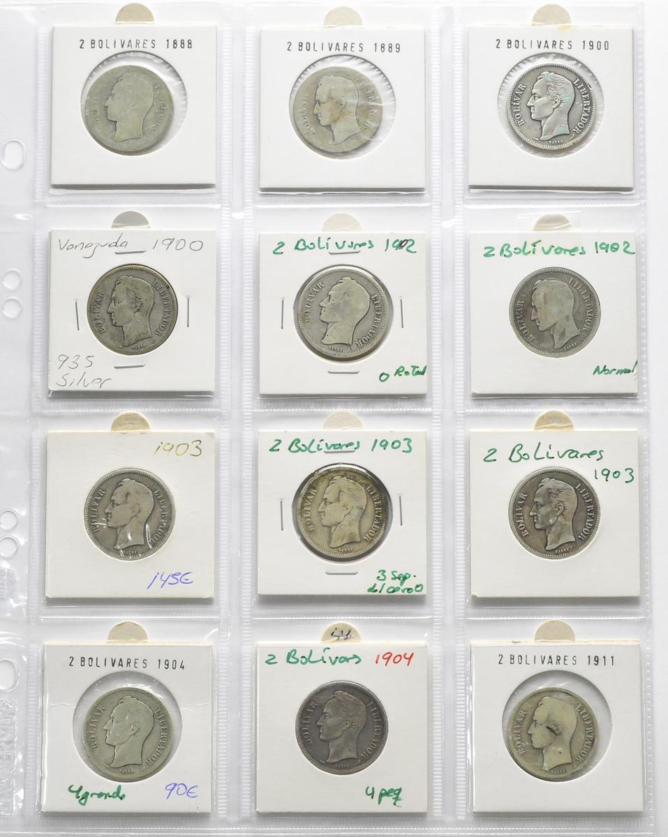 VENEZUELA. Conjunto formado por 23 monedas de 2 Bolívares de fechas comprendidas entre 1888 y 1936. Diferentes estados de conservación. A EXAMINAR.