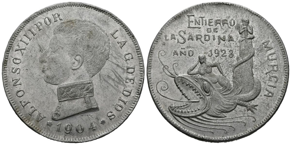 ALFONSO XIII (1885-1931). Medalla. (Al. 7,04g/38mm). 1904. Murcia. MBC. Escasa.Ex Aureo 204-1 18/12/2007, Nº753.