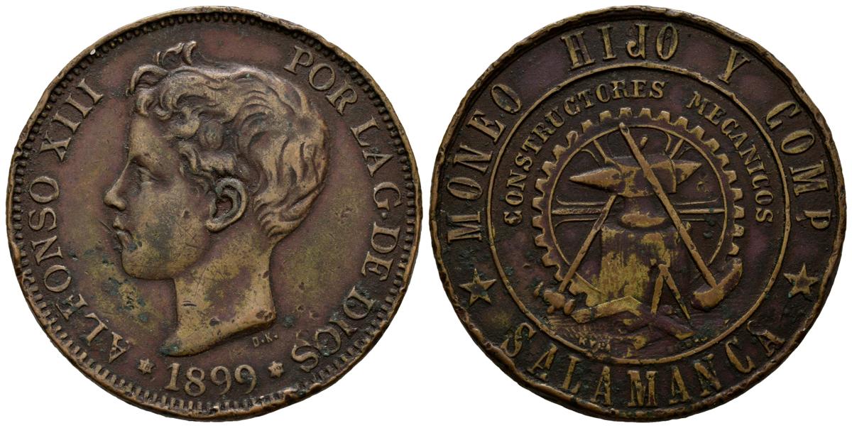 ALFONSO XIII (1885-1931). Medalla. (La. 16,18g/37mm). 1899 *18-99. Salamanca. MBC-. Golpes en canto.