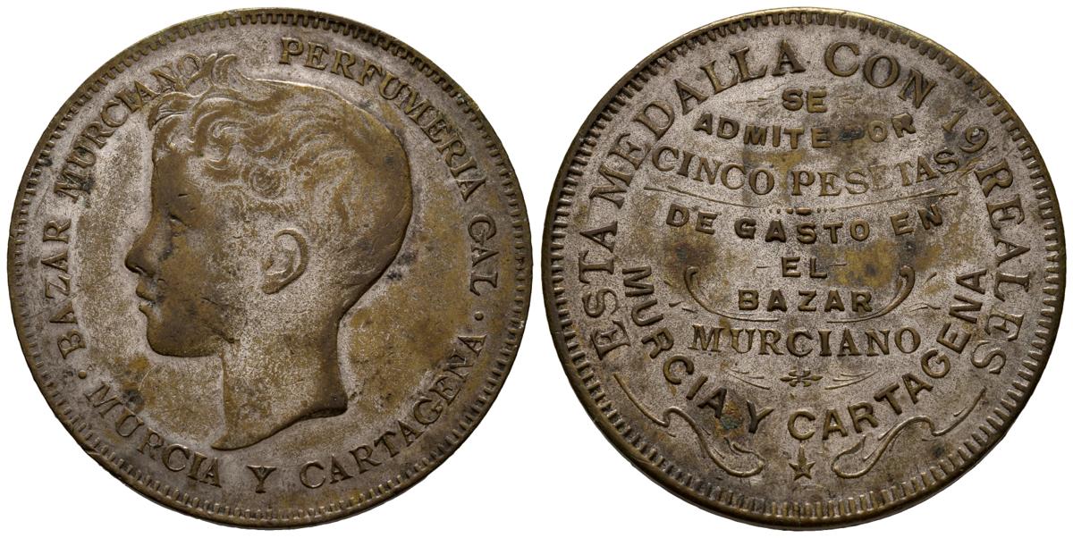 ALFONSO XIII (1885-1931). Medalla. (La. 17,45g/37mm). Murcia y Cartagena. MBC.Ex Aureo 226-2 01/07/2010, Nº 3419.