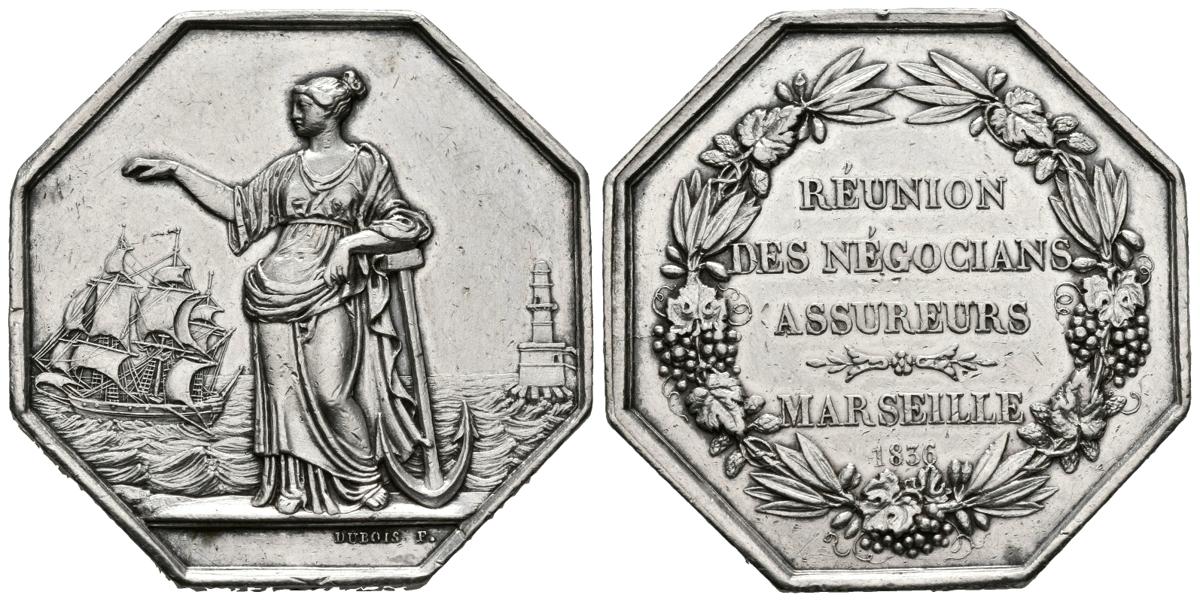 FRANCIA. Medalla. (Ar. 19,67g/34mm). 1893. Reunion des negocians Assureurs-Marseille. Grabador: Dubois. F. EBC-/MBC+.