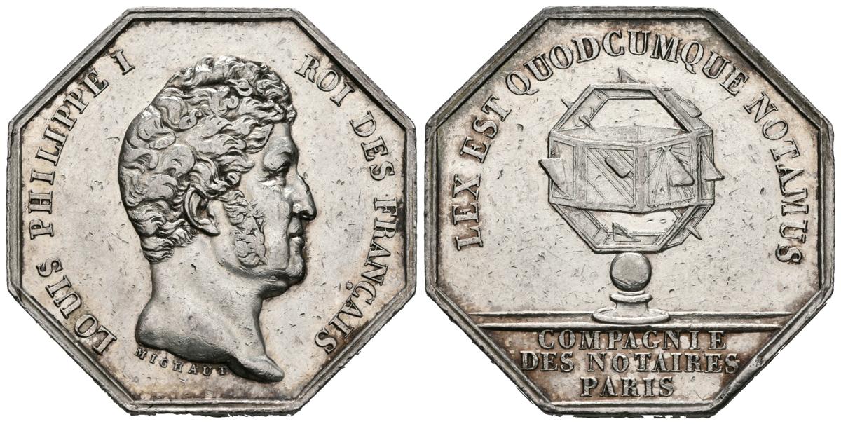 FRANCIA. Medalla. (Ar. 19.01g/33mm). S/D. Reinado de Louis Philippe I. Compagne des Notaires París. Grabador Mighaut. (Lerouge319). MBC.