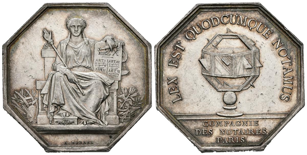 FRANCIA. Medalla. (Ar. 19,79g/34mm). S/D. Compagnie des Notaires Paris. Grabador: A. Borrel. (Lerouge319). MBC.