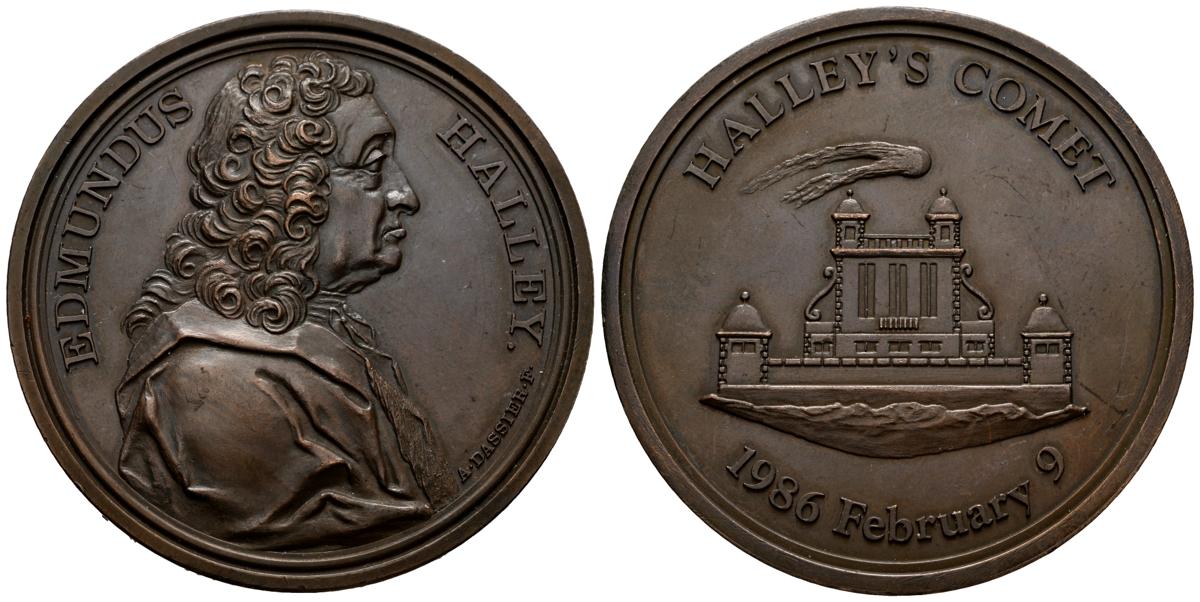 EDMUNDUS HALLEY. Medalla conmemorativa al paso de cometa Hallaey el 9 de febrero de 1986. (Ae. 65,02g/60mm). 1986. Autor: A. Dassier. SC.