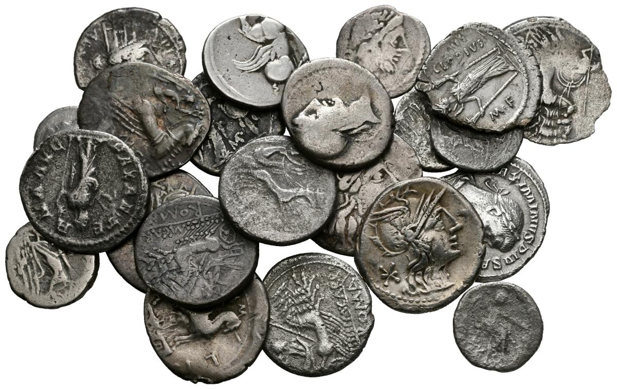 REPUBLICA ROMANA e IMPERIO ROMANO. Conjunto de 22 monedas de plata de diferentes valores, cecas y emperadores romanos. A EXAMINAR.