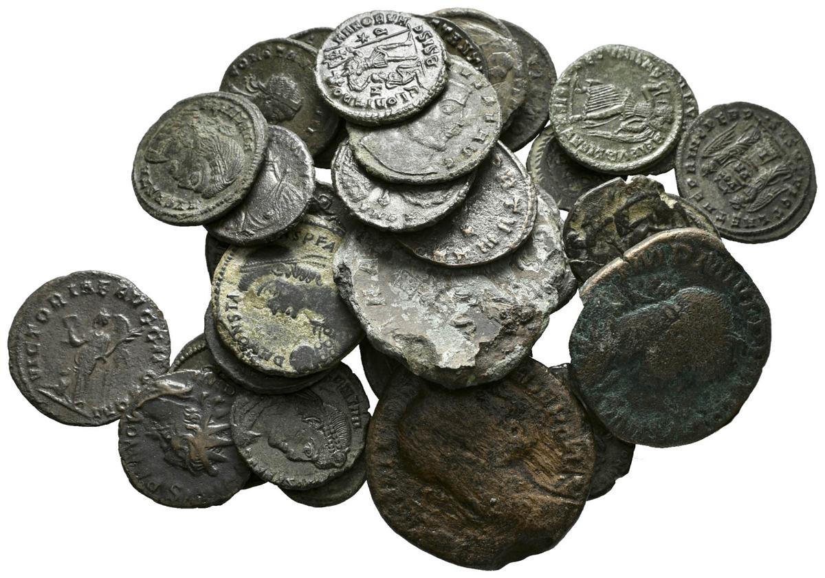 IMPERIO ROMANO. Lote compuesto por 39 monedas de bronce, conteniendo los siguientes emperadores: Constantino I, Helena, Licinio I, Licinio II, Constancio, Juliano II, Graciano, Valentiniano, Decencio,Victorino, Probo, Quintillo, Galieno y Filipo I. Incluye 3 Sestercios de Alejandro Severo, Filipo I y Filipo II. Gran variedad de cecas. A EXAMINAR.