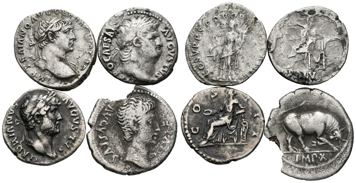 IMPERIO ROMANO. Lote compuesto por 4 Denarios limpiados de diferentes emperadores, uno de ellos forrado. A EXAMINAR.