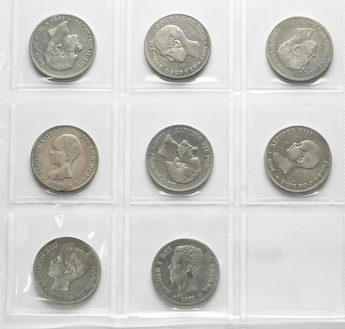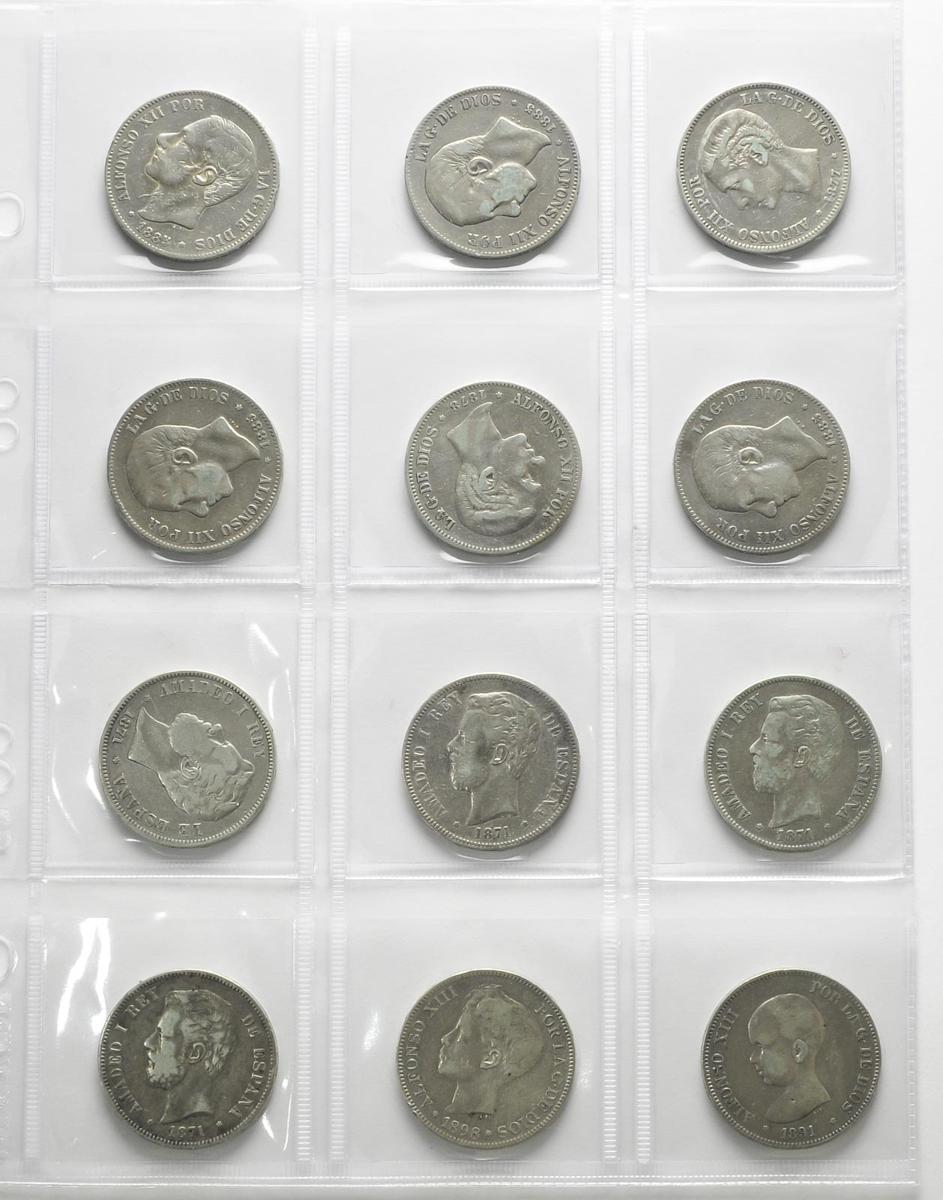 CENTENARIO DE LA PESETA. Conjunto formado por 20 monedas de 5 Pesetas de los reinados de Amadeo I, Alfonso XII y Alfonso XIII. Diferentes estados de conservación. A EXAMINAR.