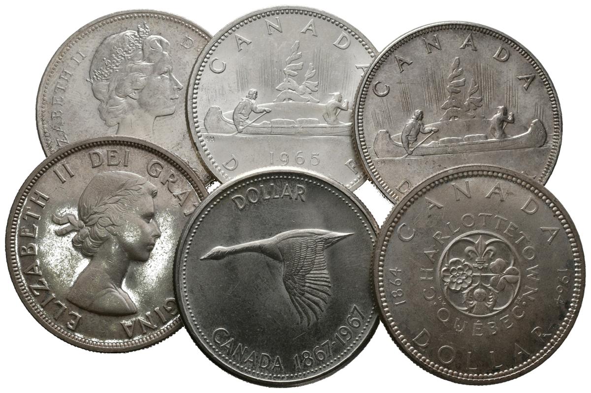 CANADA. Conjunto de 6 monedas de plata de 1 Dollar de fechas comprendidas entre 1958 y 1967. Diferentes estados de conservación. A EXAMINAR.
