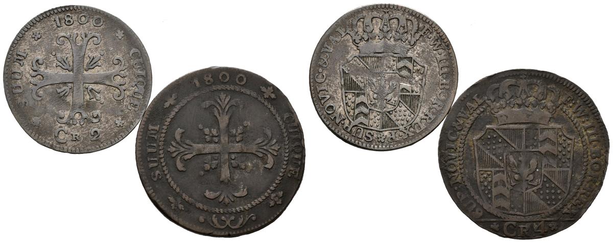 ESTADOS ALEMANES y PRUSIA. Conjunto de dos monedas de 2 y 4 Kreuzer de 1800. Reinado de Friedrich Wilhelm III. Diferentes estados de conservación. A EXAMINAR.