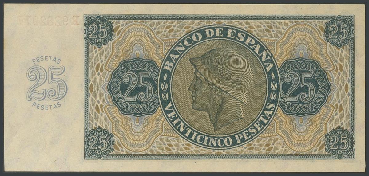 25 Pesetas. 21 de Noviembre de 1936. Serie R. (Edifil 2017: 419a). SC-.