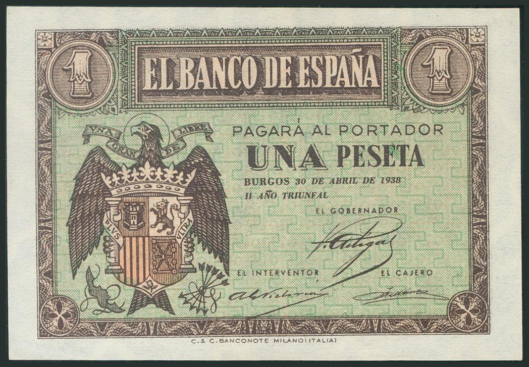 1 Peseta. 30 de Abril de 1938. Serie F. (Edifil 2017: 428a). SC.