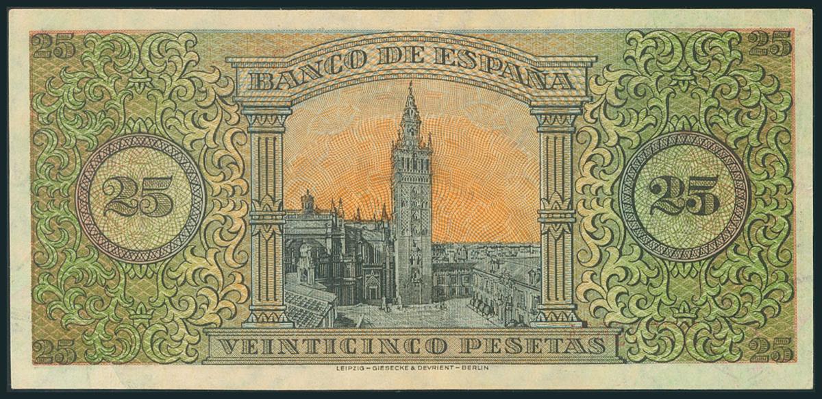 25 Pesetas. 20 de Mayo de 1938. Serie B. (Edifil 2017: 430a). Conserva parte del apresto original. EBC.