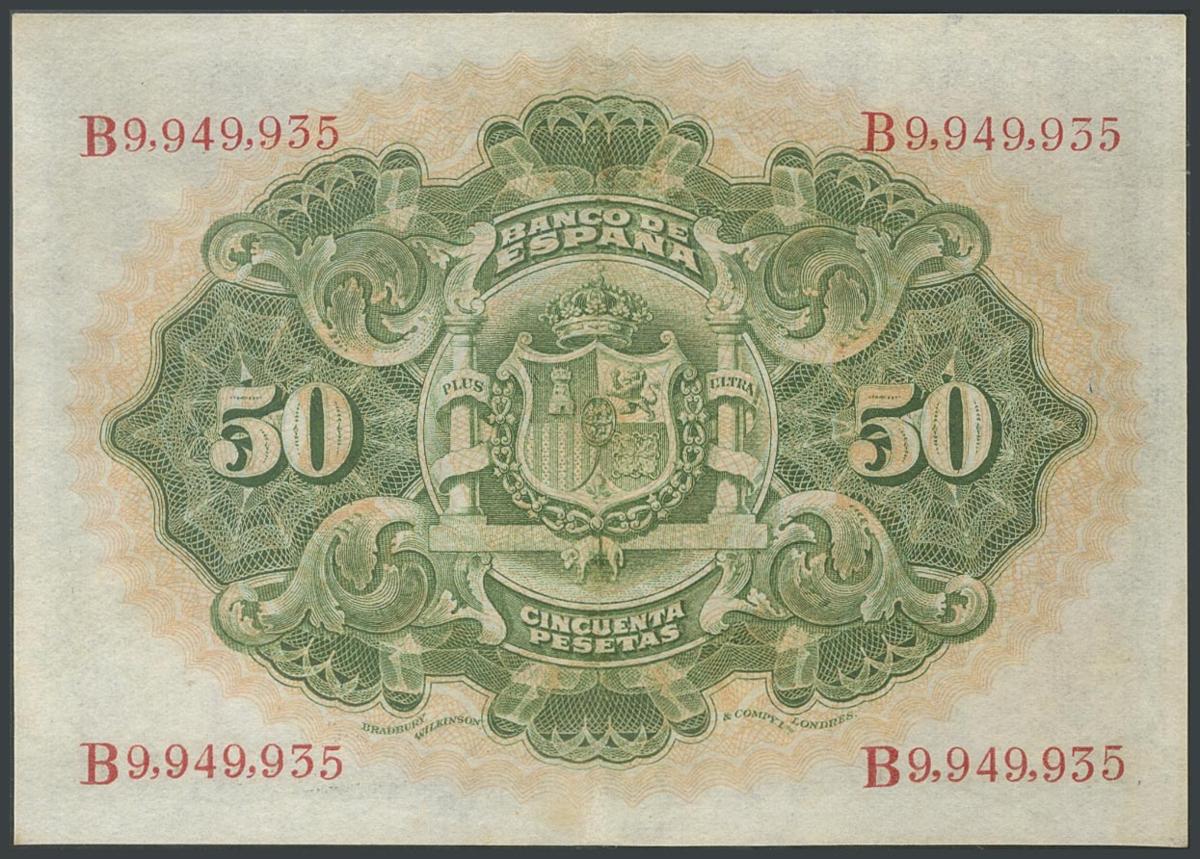 50 Pesetas. 24 de Septiembre de 1906. Serie B. (Edifil 2017: 315a). Ligera reparación en el margen superior. MBC+.