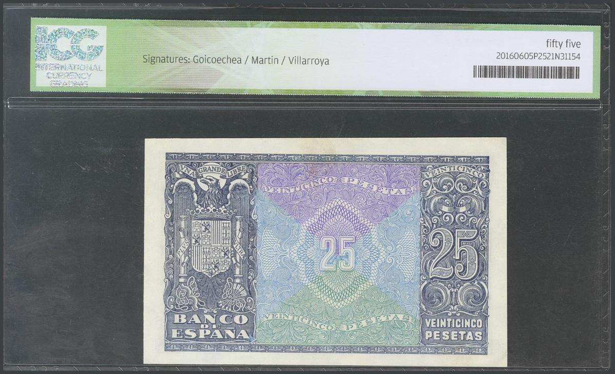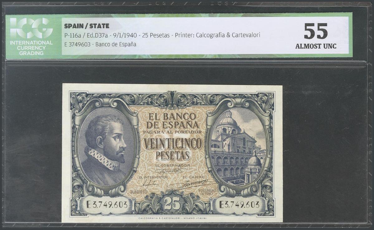 25 Pesetas. 9 de Enero de 1940. Serie E. (Edifil 2017: 436a). Encapsulado ICG55. EBC+.