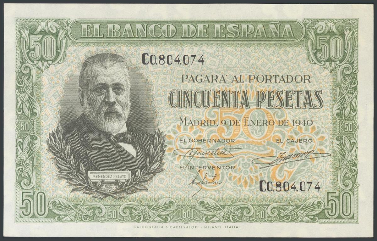 50 Pesetas. 9 de Enero de 1940. Serie C. (Edifil 2017: 437a). Apresto original. SC.