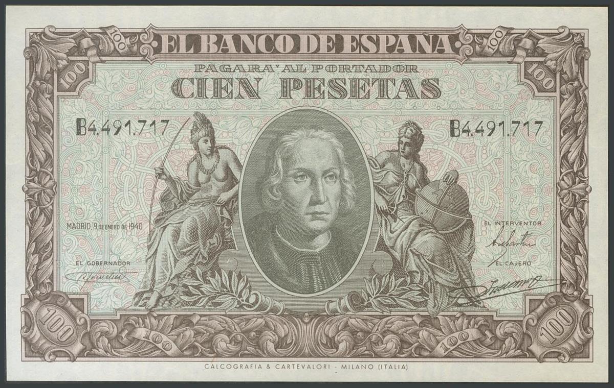100 Pesetas. 9 de Enero de 1940. Serie B. (González: 438a). SC.