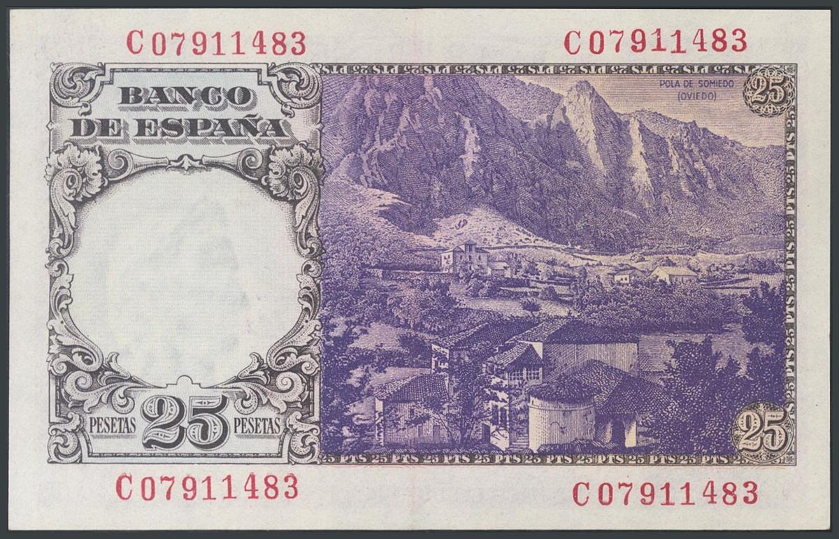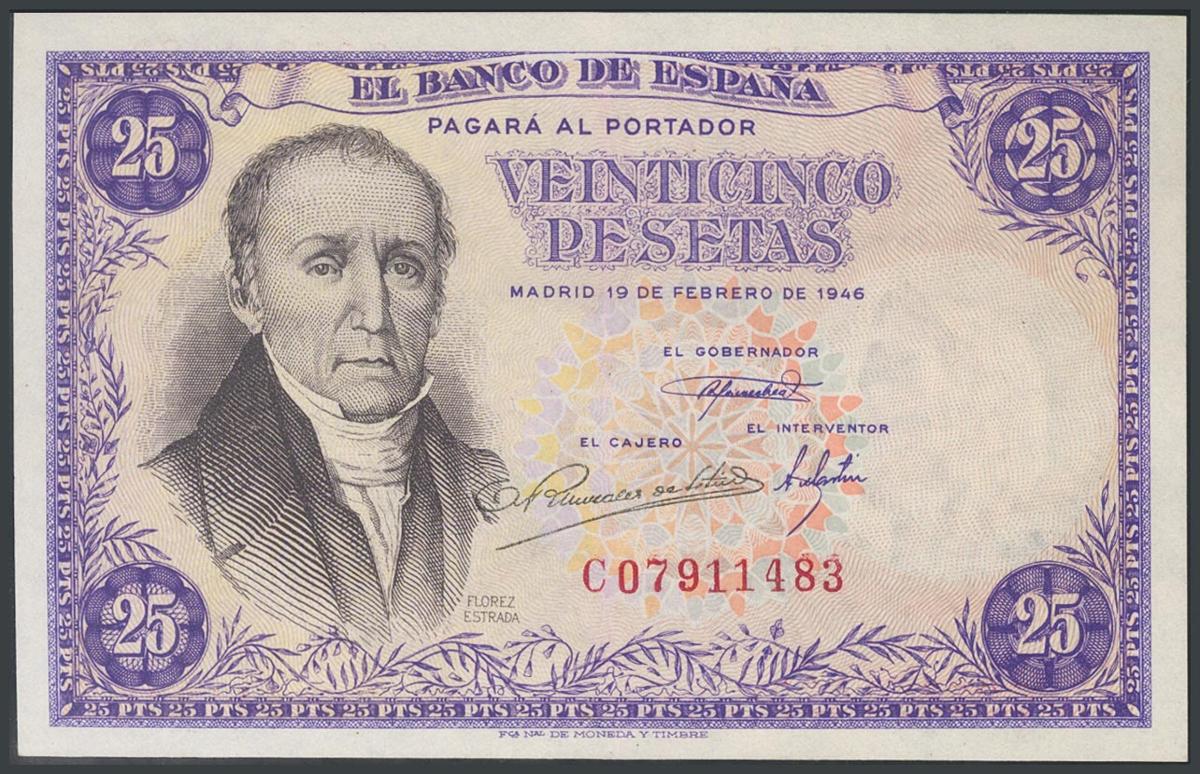 25 Pesetas. 19 de Febrero de 1946. Serie C. (Edifil 2017: 450a). EBC+.