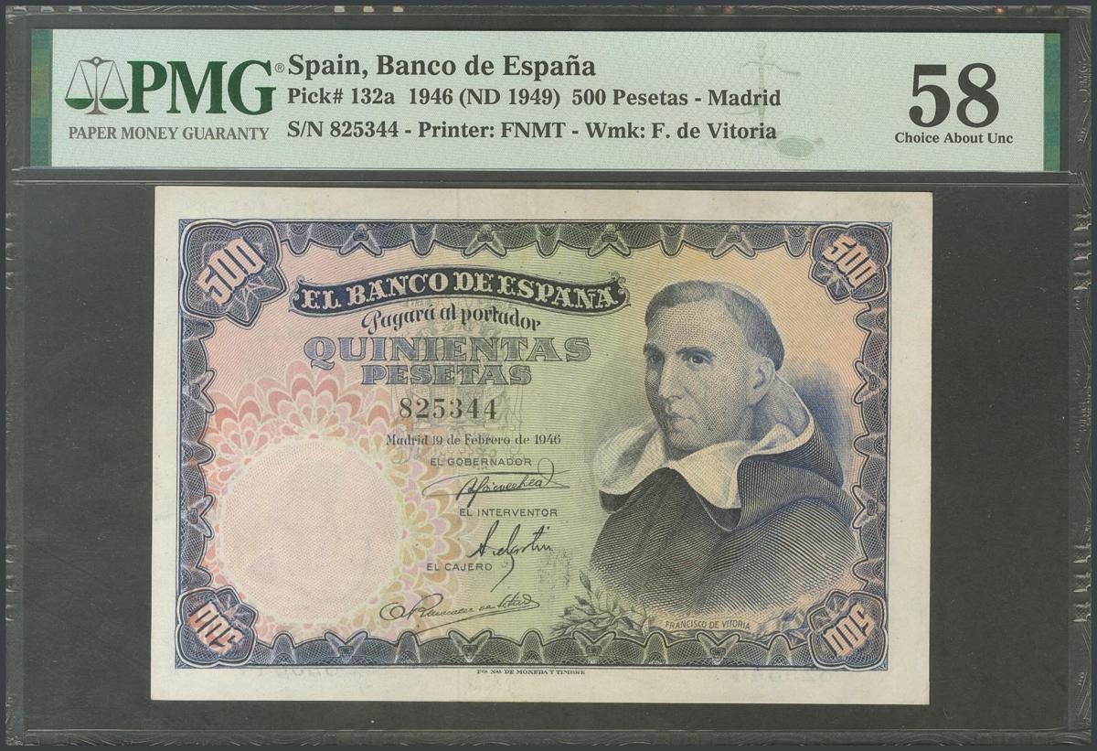 500 Pesetas. 19 de Febrero de 1946. Sin serie. (Edifil 2017: 452). Inusual así. EBC+. Encapsulado PMG58.