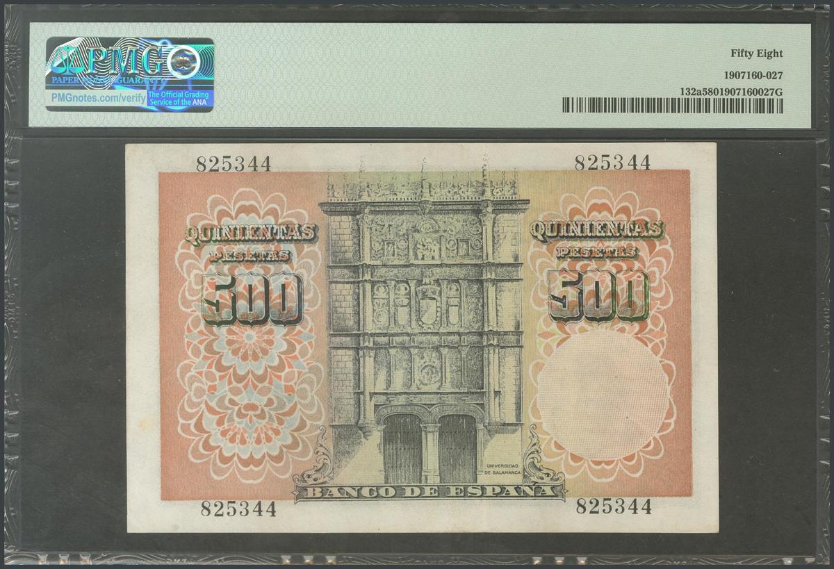 500 Pesetas. 19 de Febrero de 1946. Sin serie. (Edifil 2017: 452). Inusual así. EBC+. Encapsulado PMG58.