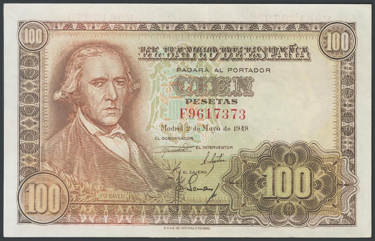 100 Pesetas. 2 de Mayo de 1948. Serie F. (Edifil 2017: 456a). SC-.