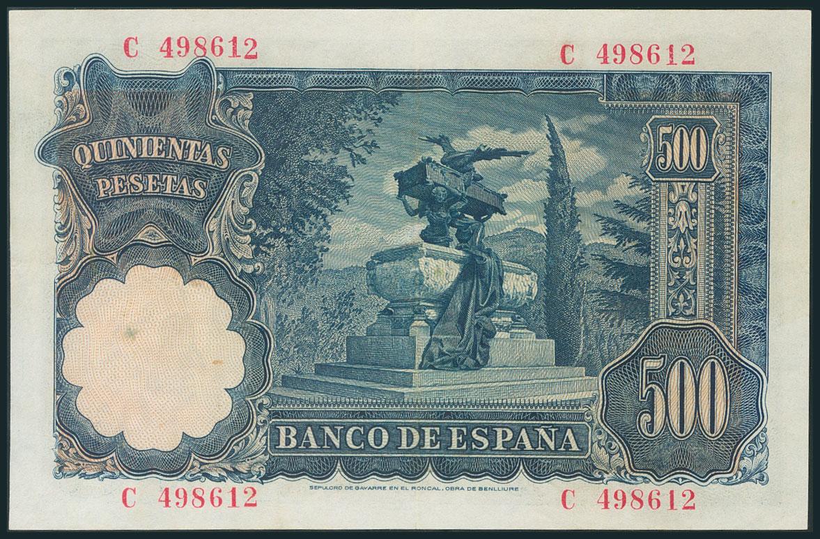 500 Pesetas. 15 de Noviembre de 1951. Serie C, última serie emitida. (Edifil 2017: 460a). Conserva gran parte del apresto original. EBC.