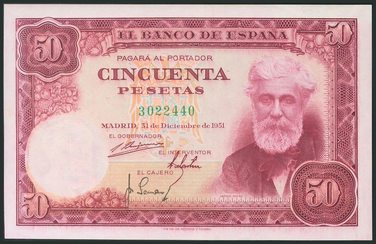 50 Pesetas. 31 de Diciembre de 1951. Sin serie. (Edifil 2017: 462). Apresto original. EBC+.