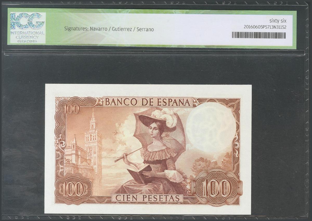 100 Pesetas. 19 de Noviembre de 1965. Sin serie. (Edifil 2017: 470). Encapsulado ICG66. SC.
